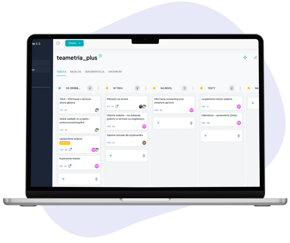 Jasne zadania, czytelne terminy i lepsza współpraca. Teametria sprawia, że Twój zespół działa jak dobrze naoliwiona maszyna.