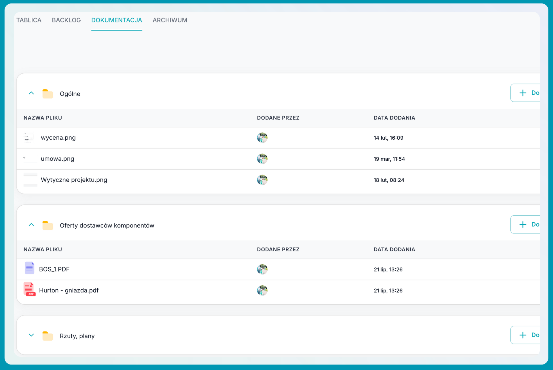 Załączniki i pliki przypięte do zadań i projektów tworzą wirtualny segregator online — wszystko pod ręką.