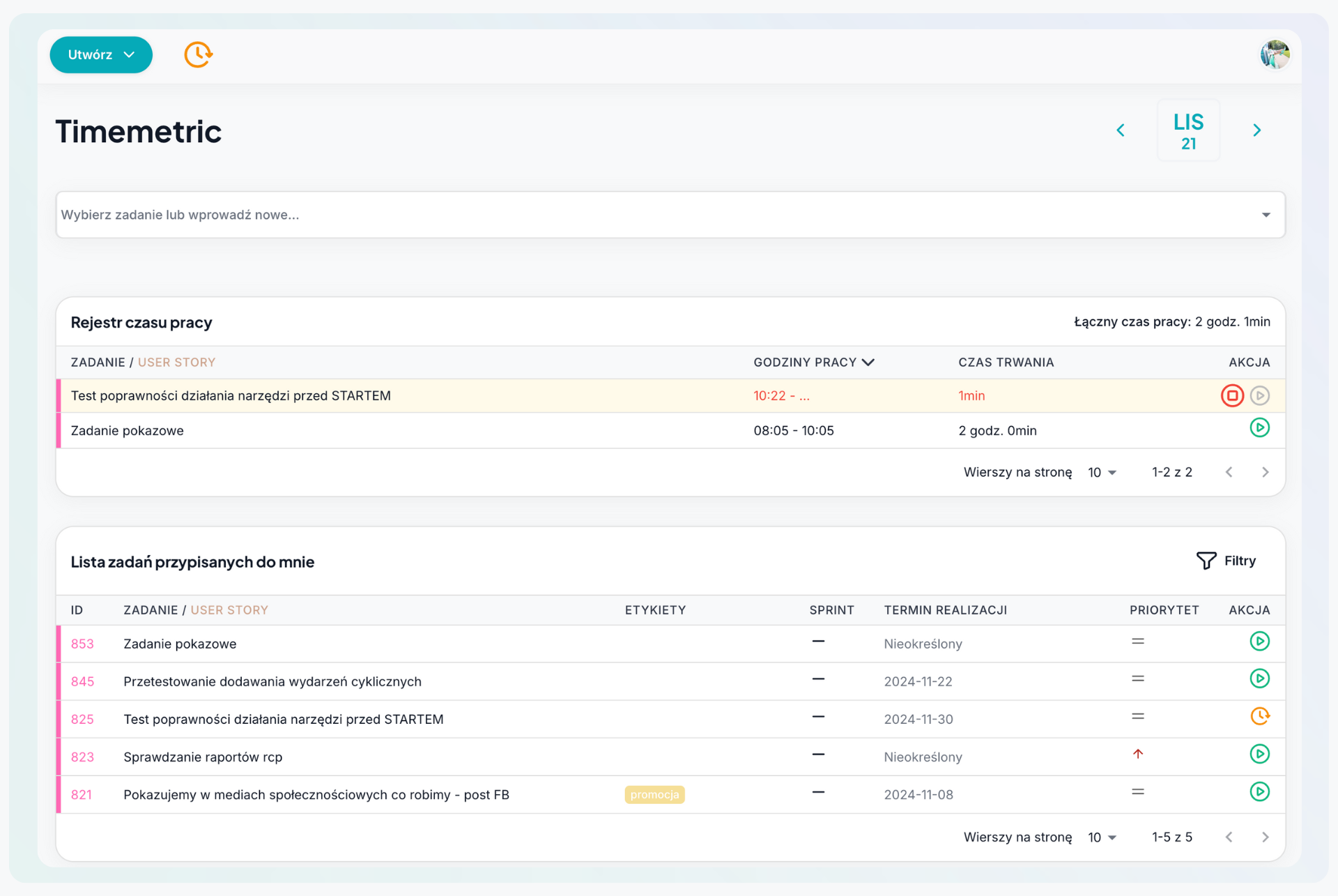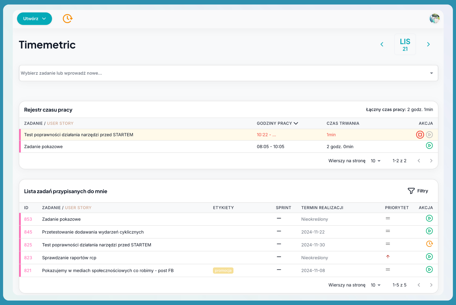 Lista zadań, pomiar czasu i współpraca w jednym miejscu...